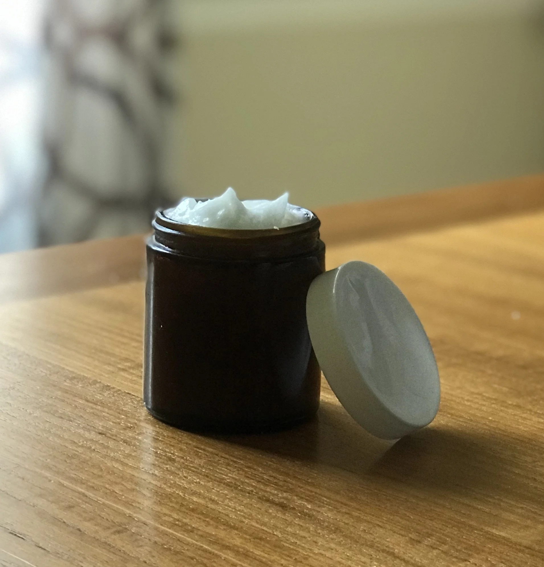 4 oz jar (amber or blue-tinted will protect the essential oils)